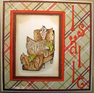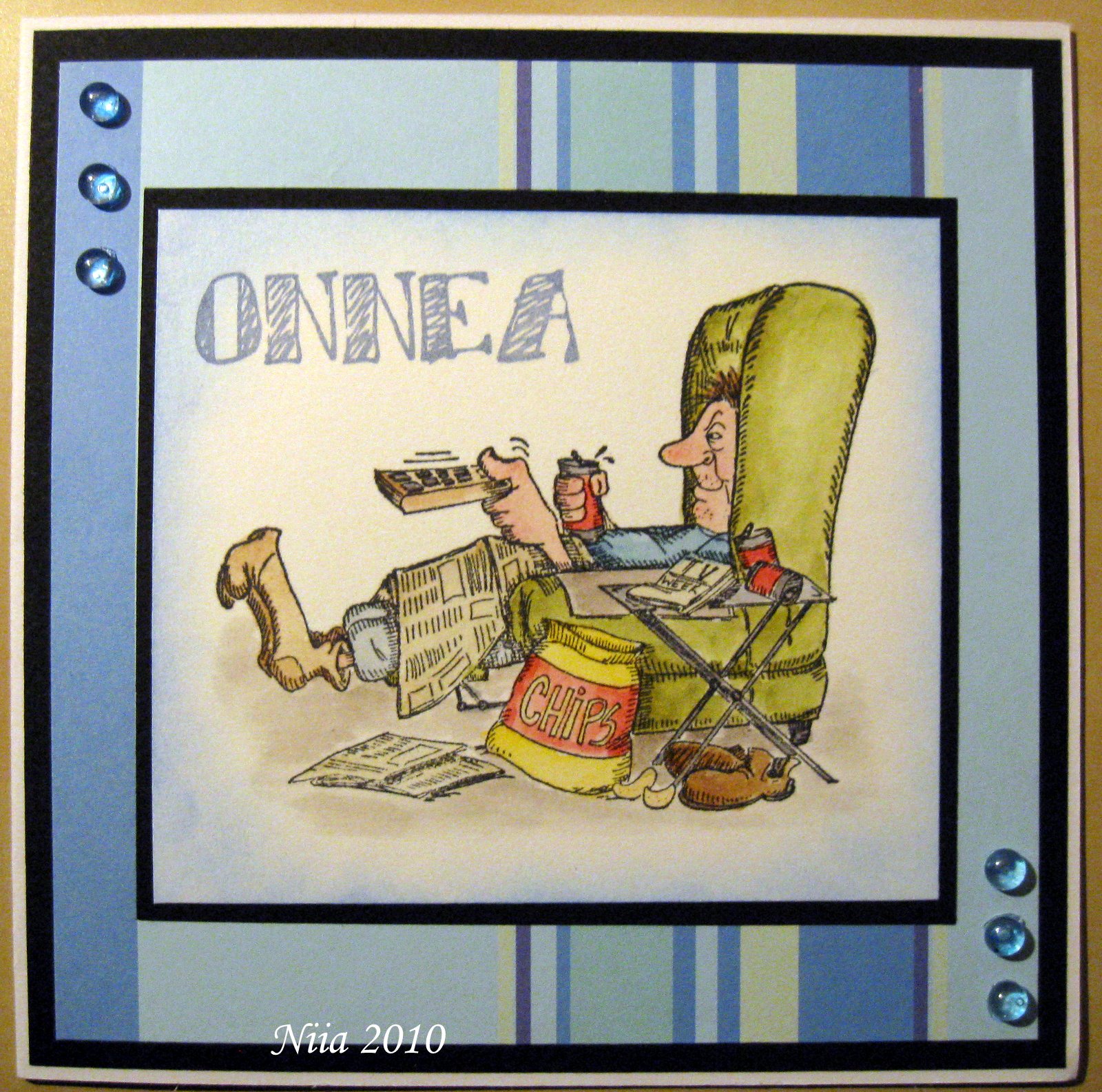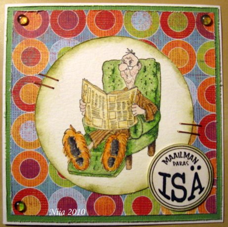 Yksinkertaisella linjalla jatketaan, sillä en oikeen osaa laittaa koristeita näihin miesten kortteihin. Tämä kortti lähti omalle isälleni :).