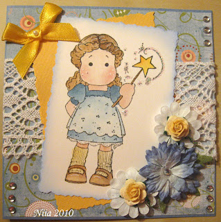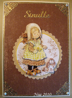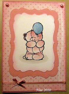 Tässä hempeä korttini viikon haasteeseen, jonka vaatimuksena on korkeintaan neljä koristetta :).lauantai 20. marraskuuta 2010