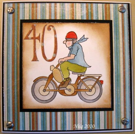 Työkaverini pyysi tekemään synttärikortin moottoripyöräilyä harrastavalle. Itselläni ei ollut ennestään mitään moottoripyörä aiheista leimasinta ja tämän löydöstä kiitos Carolalle. sunnuntai 24. lokakuuta 2010