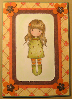 Tässä pitkästä aikaa korttini P*skarteluhaasteeseen. Ohjeena oli kolme kuviopaperia ja todella