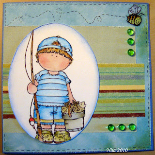 Ihana kalamies ja tuo pörriäinen on kiva lisä...antaa vauhtia kortille:))Upeat väritykset ja kauniit:))