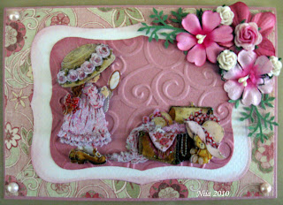 Oi, kuinka on suloinen kortti! Ihana Sarah Kayn 3D-kuva. En ole aiemmin nähnytkään tätä.Upea kukka-asetelma ja kauniit paperit.