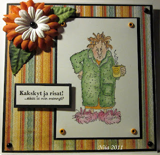 Piti sitten ottaa vielä äsken tällä kortilla osaa Lauran haasteeseen, mutta myöhästyin kun kuva ei latautunut millään blogiin :(.