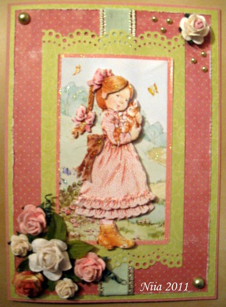Onpas kaunis. Söpö kuva ja tykkään korttisi väreistä.