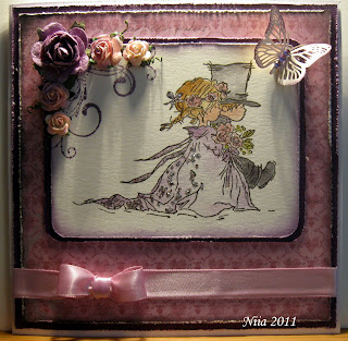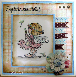 Muutaman kortin olen kumminkin joten kuten saanut aikaiseksi ja tässä yksi niistä. Mieheni vei tämän työkaverilleen.