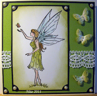 Huikaisevan ihana keijukainen:) Todella ihastuttava kortti ja niin kauniita perhosia:)))