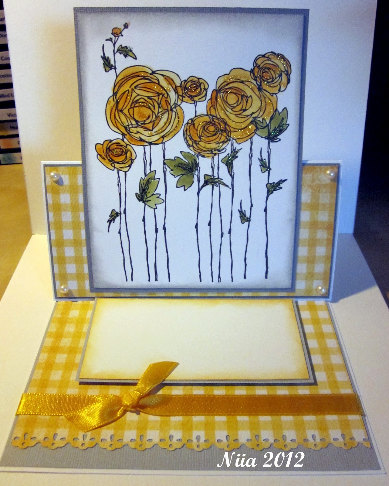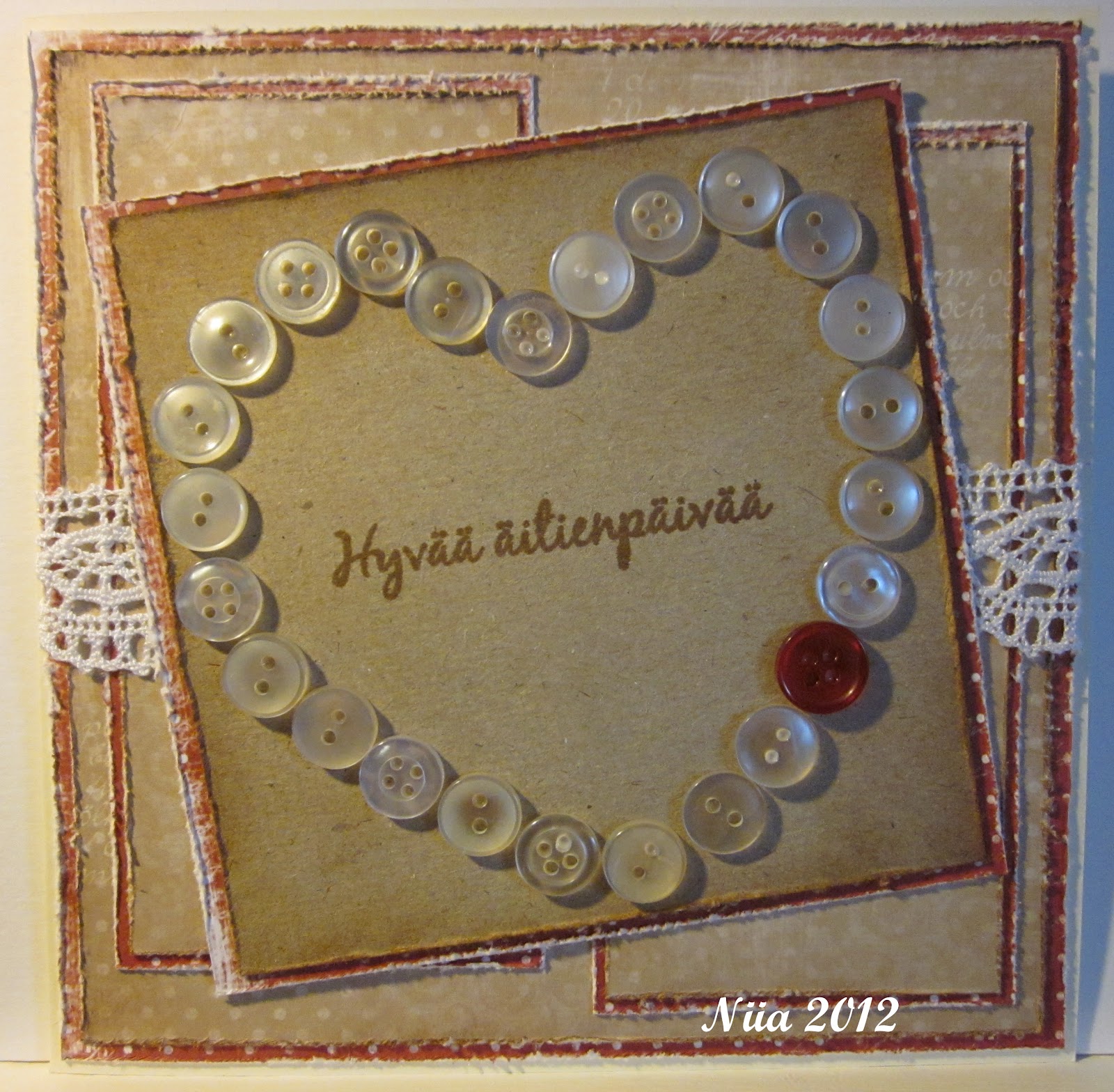 Tällaisen korttimallin löysin tämän kuun Papercraftin lehdestä. Kivan simppeli kortti, josta voi tehdä eri variaatioita. Posti-Pate kuljetti tämän kortin omalle äidilleni :).