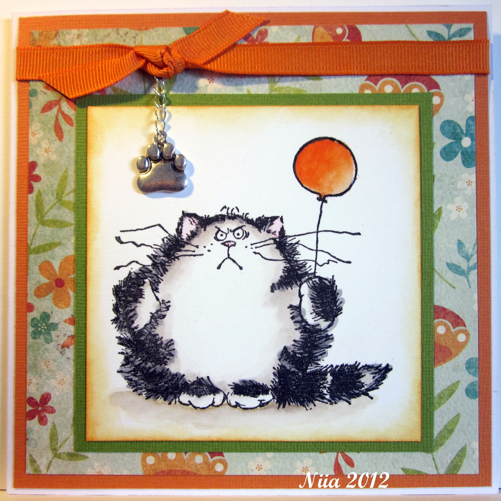 Tämän kortin väsäilin samalle kaverilleni, jolle tein edellisenkin. Ilmapalloon laitoin glossyä ja tassun löysin eilen Helmien talosta, kun kävin pyörähtämässä Kädentaitomessuilla Messukeskuksessa.