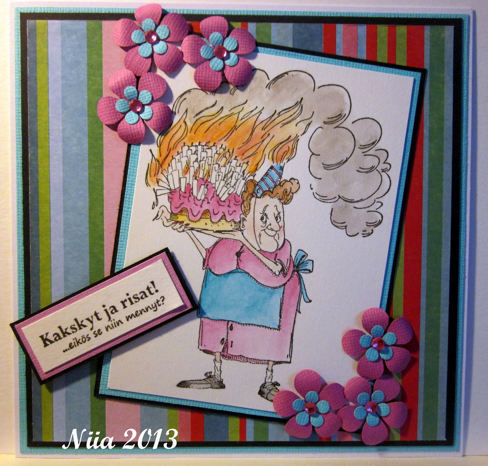 Tämä kirjakortti lähti kohti Torniota mieheni äidille. Harmittaa, kun en tullut ottaneeksi sisäpuolesta kuvaa.